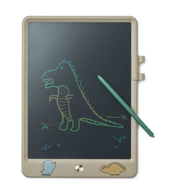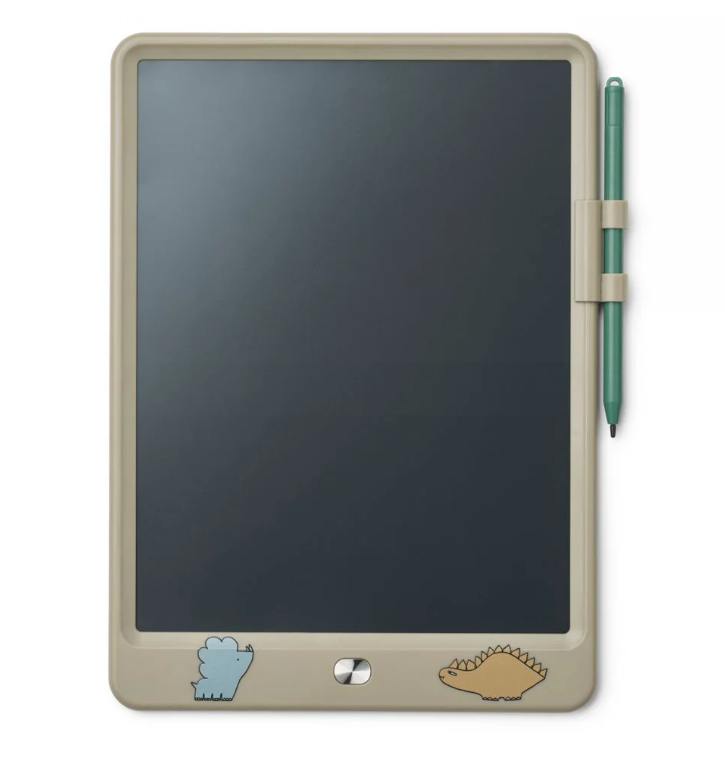 - Tekentafel met LCD-scherm inclusief tekenpen- Kleur dinosaurs/mist - Een leuke gadget waarmee uw kinderen kunnen tekenen en hun creatieve vaardigheden kunnen ontdekken - Een herbruikbaar alternatief voor pen en papier dat gemakkelijk overal mee naartoe te nemen is - Druk op de knop aan de voorkant om het scherm leeg te maken of zet de tekening vast door het slot aan de achterkant te verschuiven - Als de tekening is vastgezet, kan uw kind doorgaan met tekenen, maar de knop aan de voorzijde maakt het scherm niet leeg - Verwisselbare knoopcelbatterij inbegrepen - Voor meeslepende speeltijd en verkenningen van de verbeelding van uw kinderen - Afmetingen: Breedte (cm) 18,5, Lengte (cm) 24