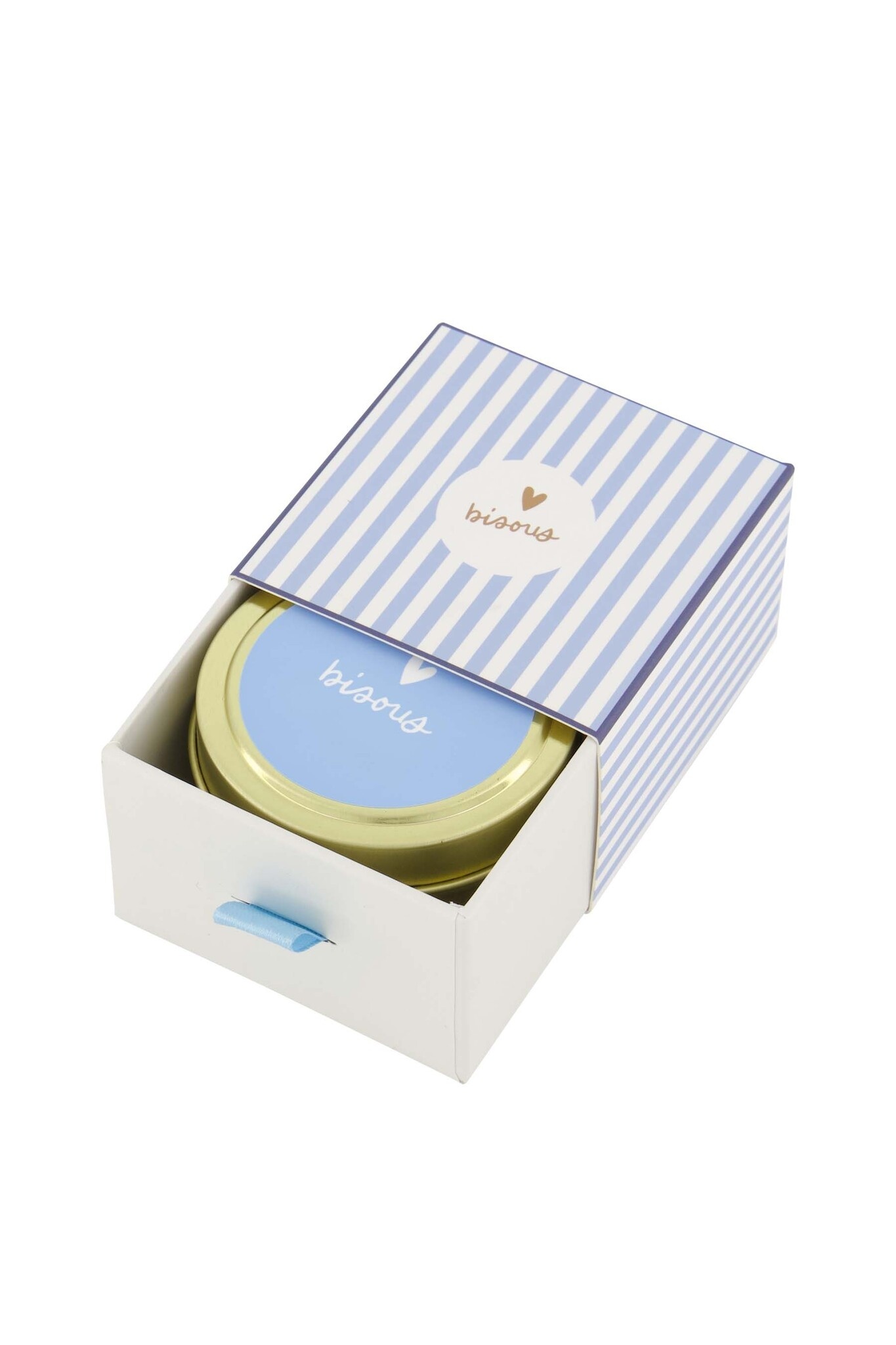 Zusss | Geurkaars schuifdoosje bisous blauw wit