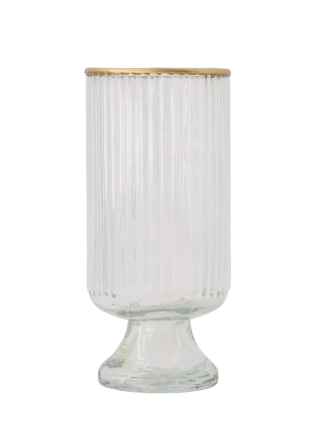 De Zusss tafelvaas van ribbelglas is dé eyecatcher voor jouw interieur. Deze mooie tafelvaas combineert transparant glas met een gouden rand voor een elegante uitstraling. Gemaakt van kwalitatief glas (itp-core.Quality), met een afmeting van S-formaat (itp-pim.Maat), past deze tafelvaas perfect op elke tafel of vensterbank. Dankzij het ribbelpatroon krijgt de tafeldecoratie een speels effect dat licht prachtig vangt. Ontdek meer binnen onze wooncollectie en geef jouw huis direct meer sfeer met deze Zusss tafelvaas van ribbelglas.