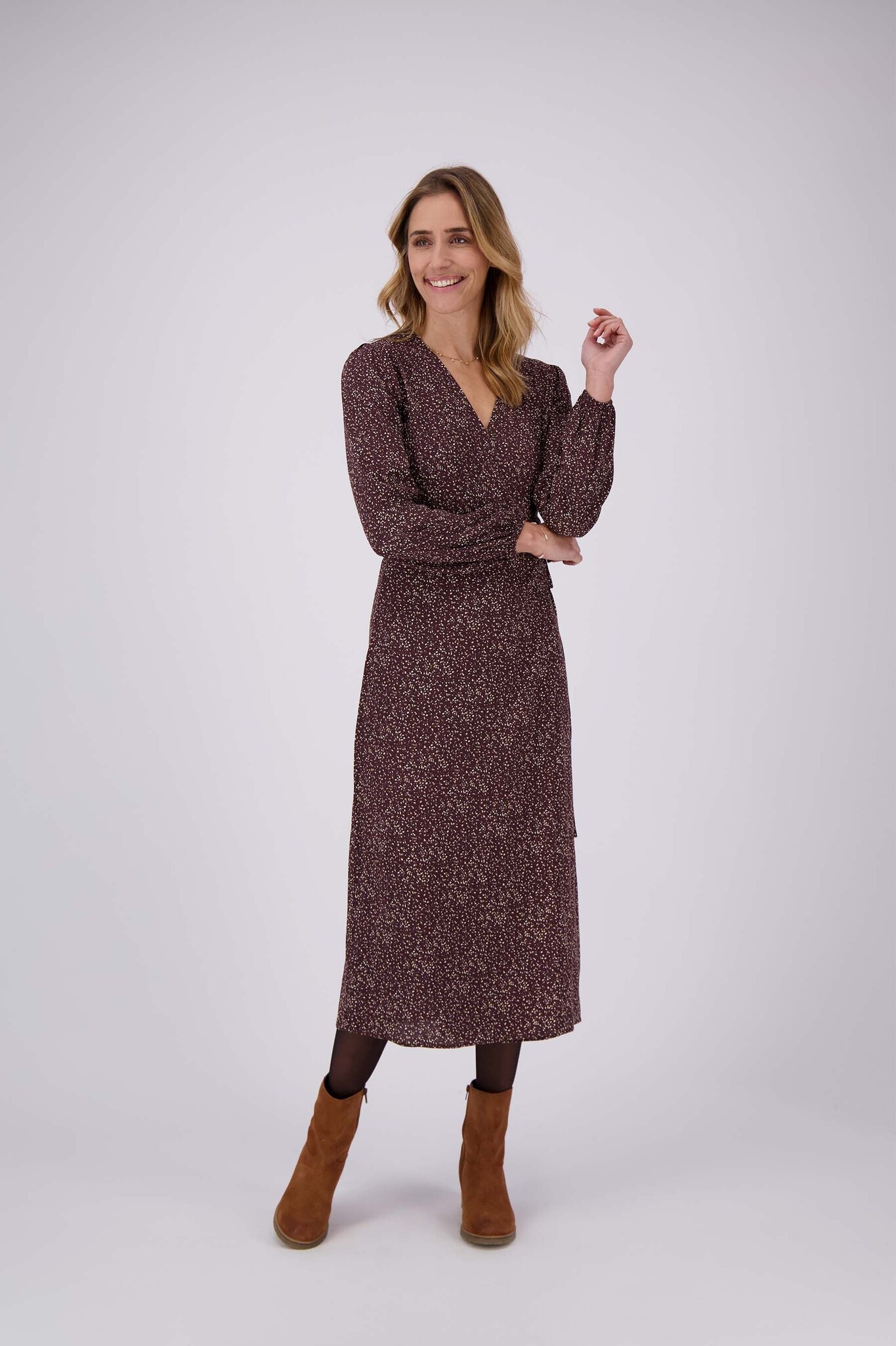 Zusss | Wikkeljurk met print chocoladebruin